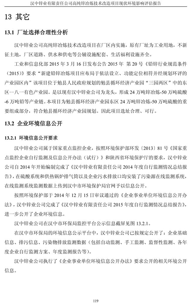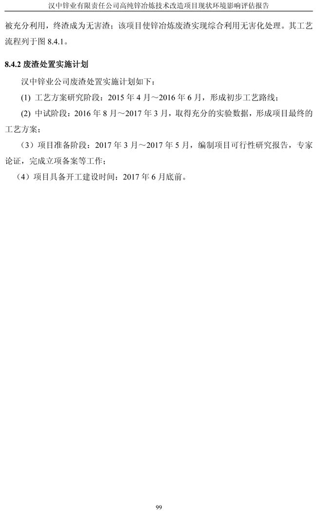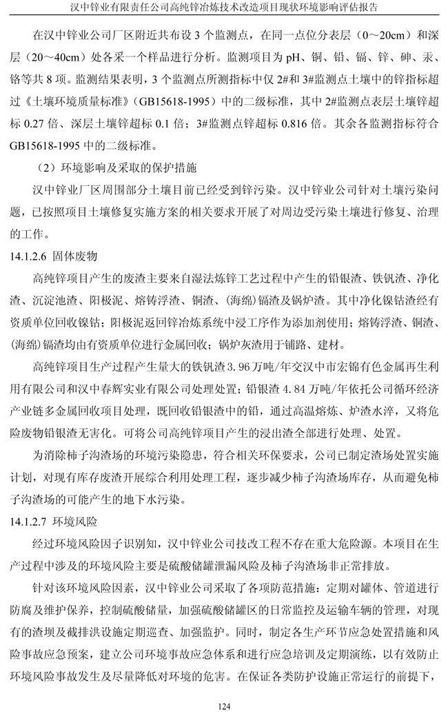 漢中鋅業(yè)公司高純鋅項目現(xiàn)狀環(huán)境影響評估報告