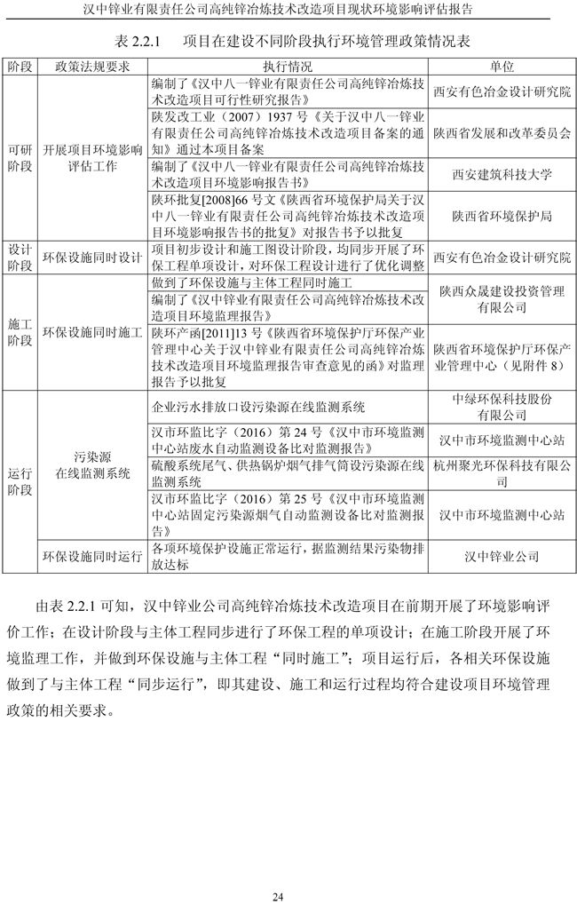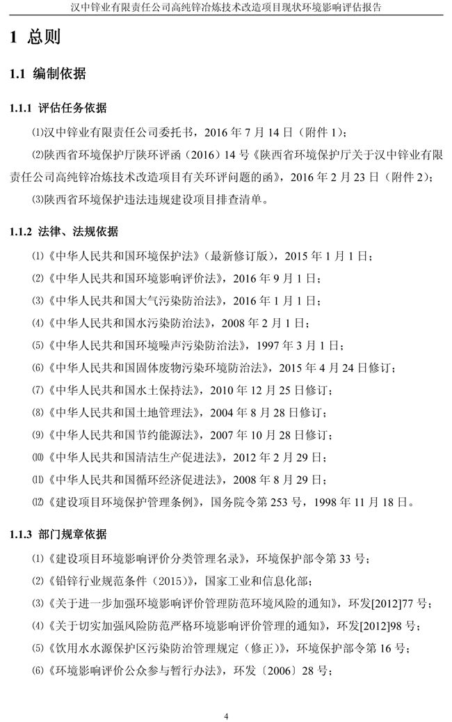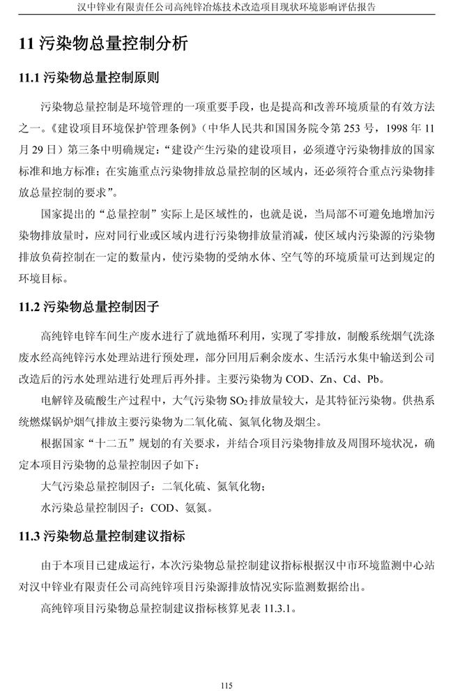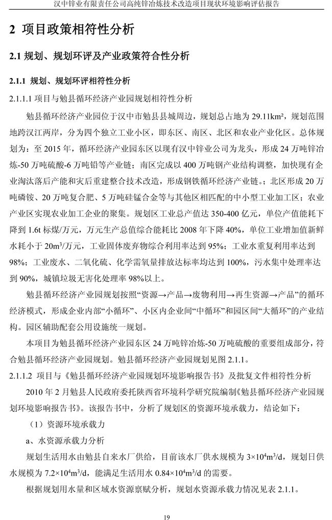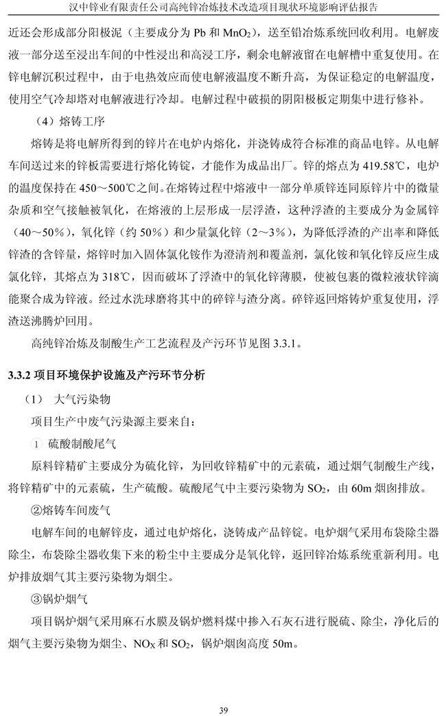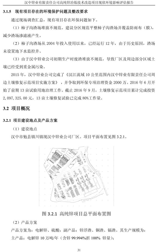 漢中鋅業(yè)公司高純鋅項目現(xiàn)狀環(huán)境影響評估報告