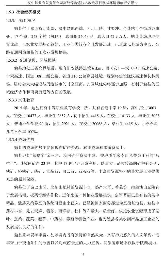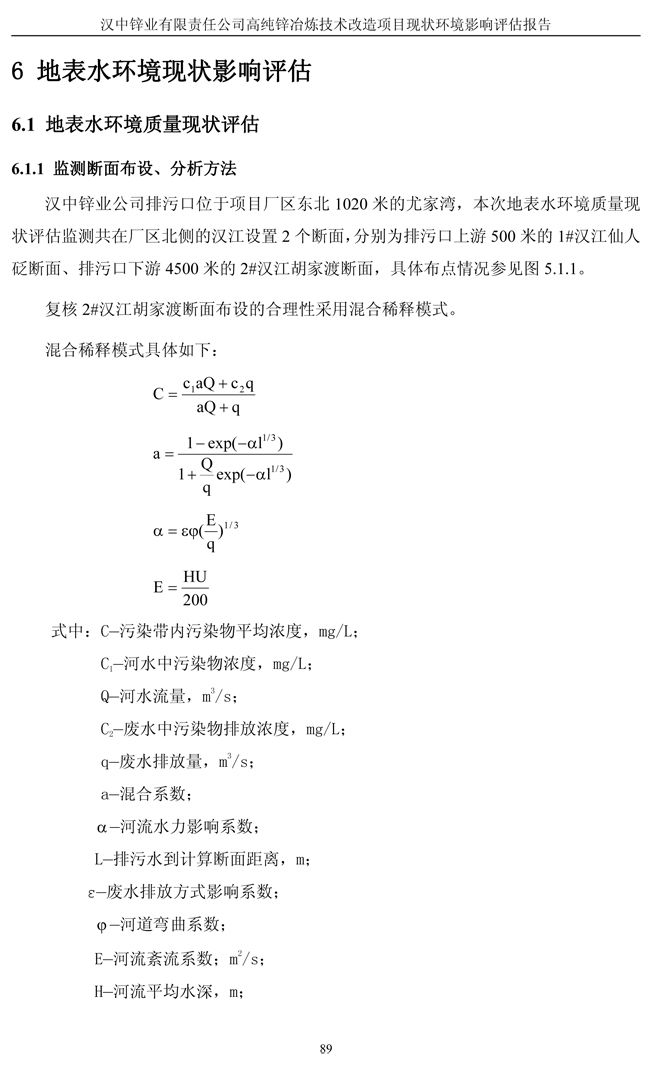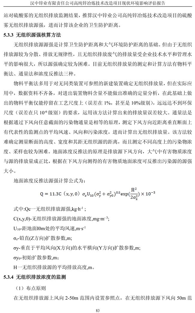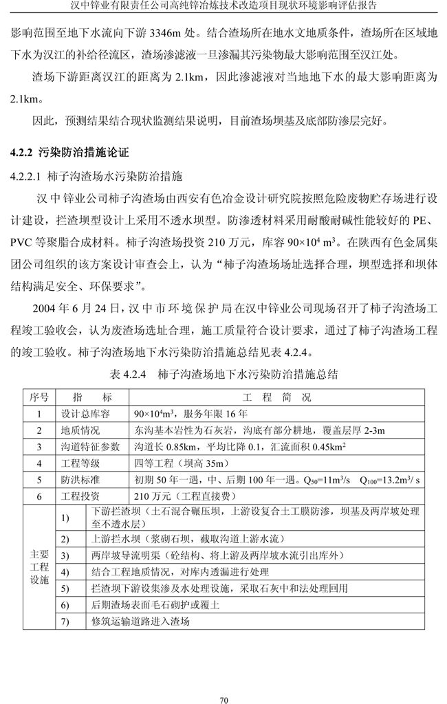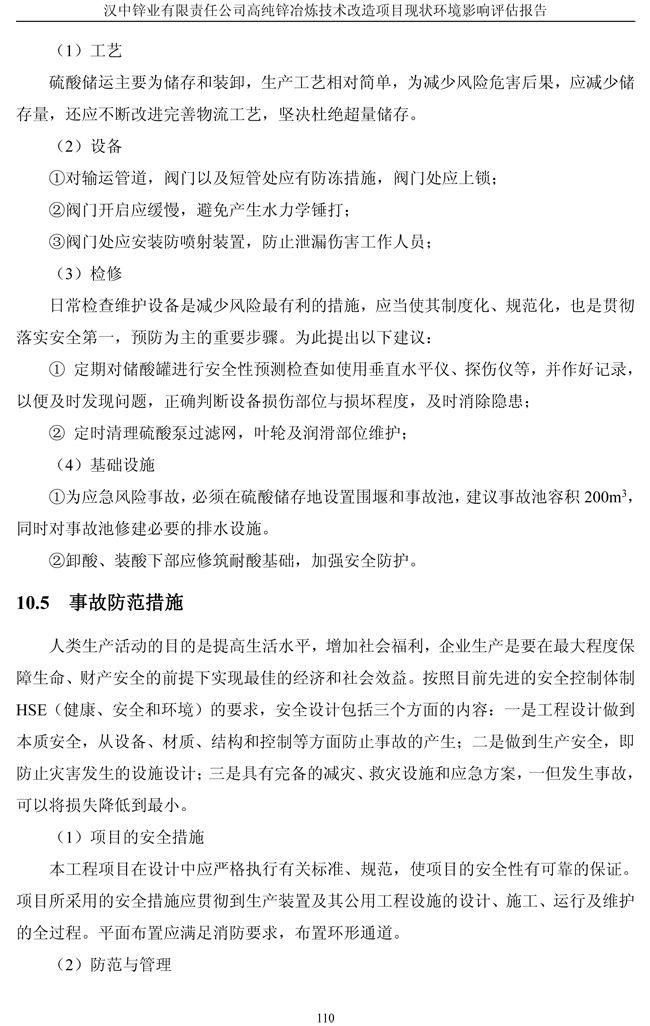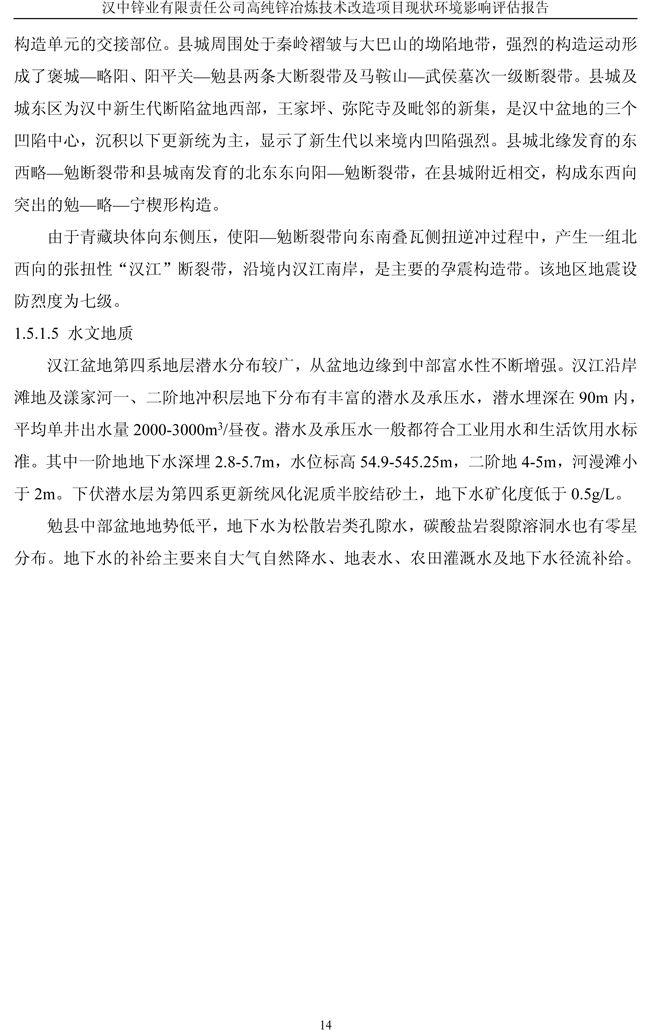 漢中鋅業(yè)公司高純鋅項目現(xiàn)狀環(huán)境影響評估報告